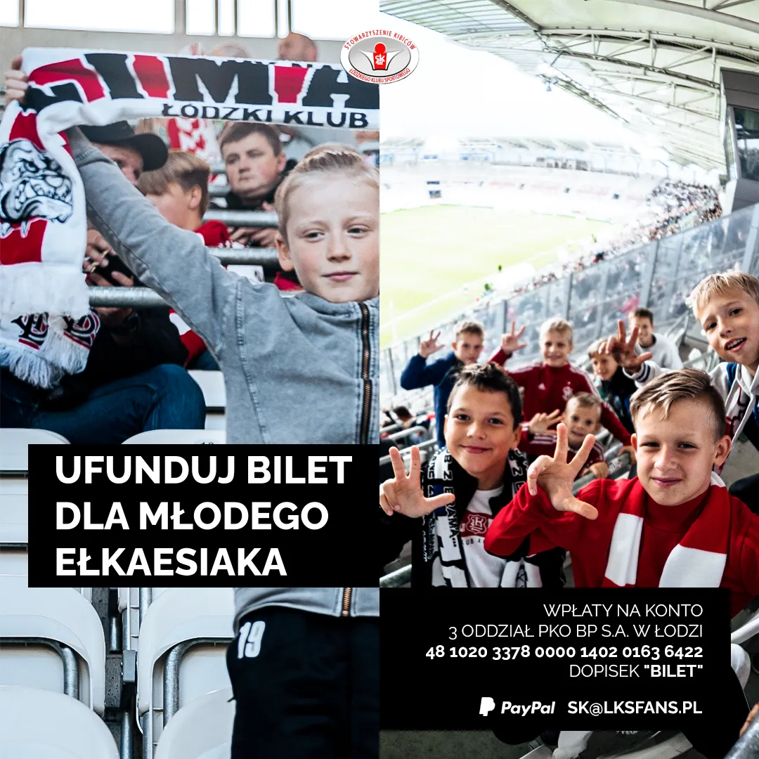 Jako SK rozpoczęliśmy akcje i wpłacać możecie dowolną kwotę, na konto 48 1020 3378 0000 1402 0163 6422 lub Paypalem. Dzięki Wam młodzież będzie mogła obejrzeć mecz Dumy Łodzi! Koszt jednego biletu ulgowego na mecz z GKS-em Katowice to 10 złotych, nie ma jednak kwoty minimalnej. Zachęcamy do jak najhojnieszych wpłat, każda złotówka zostanie na pewno dobrze wydana!