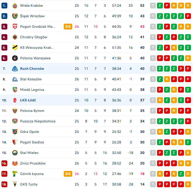 Tabela Betclic 1. Ligi