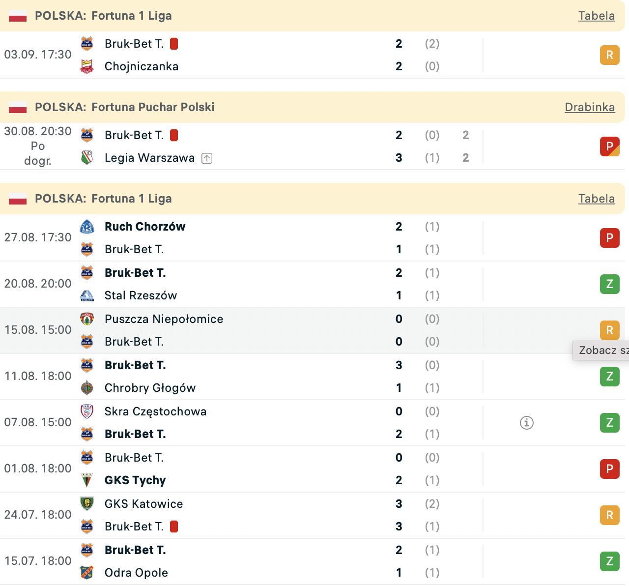W minionej kolejce Termalika Nieciecza podzieliła się punkami z Chojniczanką Chojnice, notując drugi remis w tym sezonie w Fortuna 1 Lidze. Gracze Termaliki szybko objęli prowadzenie po dwóch golach Tomasa Poznara, ale w końcówce gościom z Chojnic za sprawą Szymona Skrzypczaka i Tomasza Mikołajczaka udało się doprowadzić do wyrównania.