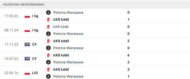 Ostatnie bezpośrednie starcia