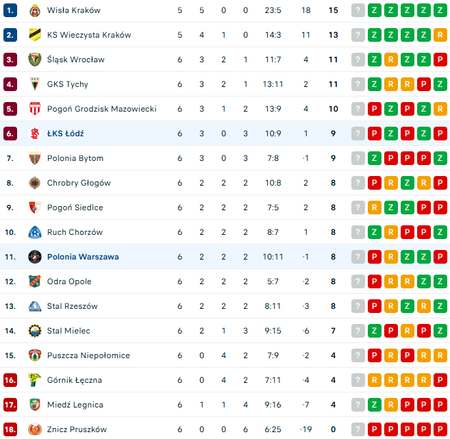 Tabela Betclic 1. Ligi