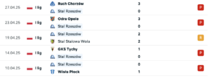 Natomiast w zespole Stali kontuzjowany jest Arsen Grosu, z kolei żadne z rzeszowian będzie pauzować z powodu kartek.
