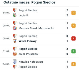 Wyniki ostatnich spotkań