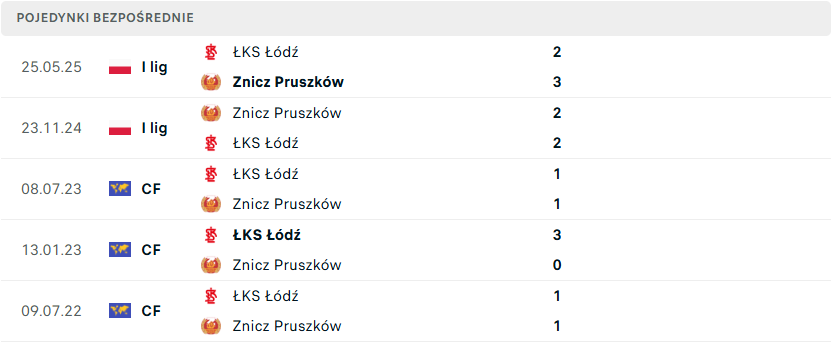 Ostatnie bezpośrednie starcia