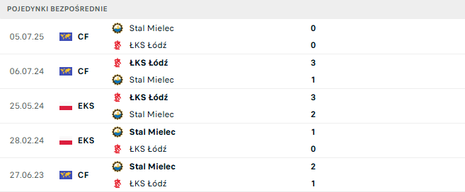 Ostatnie bezpośrednie starcia