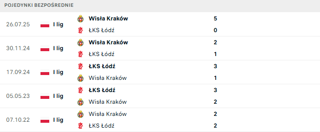 Ostatnie bezpośrednie starcia