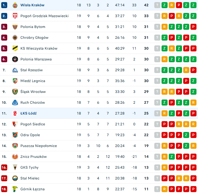 Tabela Betclic 1. Ligi