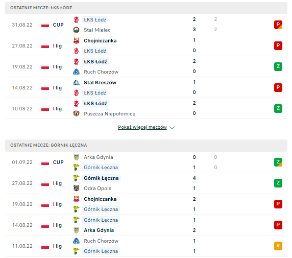 Wyniki ostatnich spotkań