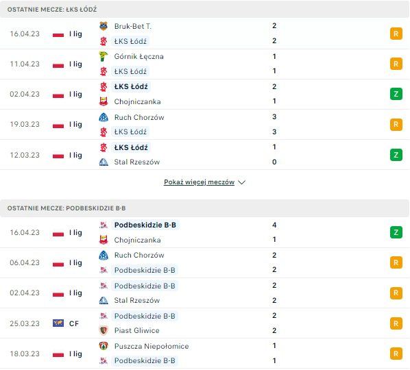 Wyniki ostatnich spotkań