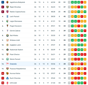 Po kompromitacji w Białymstoku, o bardzo potrzebne punkty powalczą z Cracovią piłkarze ŁKS-u. Rywal na pewno jest w zasięgu podopiecznych Marcina Matysiaka, ponieważ w ostatnich pięciu meczach drużyna „Pasów” zdobyła zaledwie trzy punkty. Jeśli „Rycerze Wiosny” chcą na poważnie włączyć się do walki o utrzymanie w lidze, zwycięstwo w Krakowie to obowiązek.